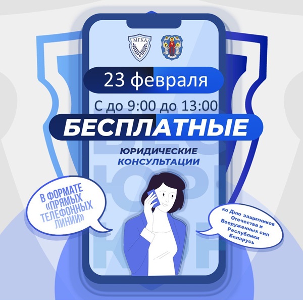 19 Февраля 2026Благотворительная акция, приуроченная ко Дню защитника ОтечестваАдвокаты Минской городской коллегии примут участие 23 февраля 2026 года с 9.00 до 13.00 в благотворительной акции, приуроченной ко Дню защитника Отечества и Вооруженных сил Республики БеларусьЧитать далее