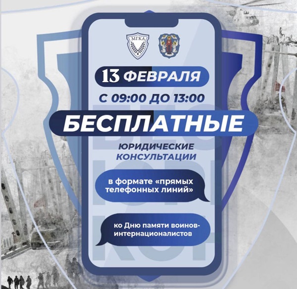 13 Февраля 2026Благотворительная акция, приуроченная ко Дню памяти воинов-интернационалистов 2026Адвокаты Минской городской коллегии примут участие 13 февраля 2026 года с 9.00 до 13.00 в благотворительной акцииЧитать далее